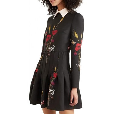 Valentino Miniabito plissée dans la laine et la soie imprimée florale seconde main