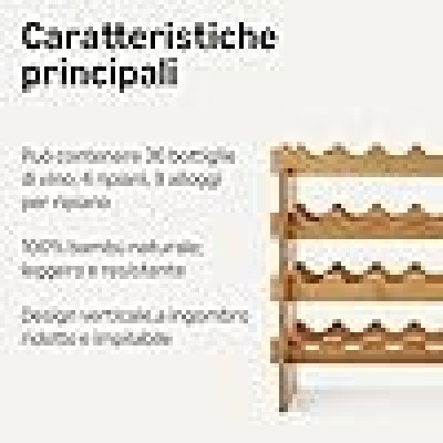 Bases Amazon Basics à vin empilables en bambou, capacité 36 bouteilles, naturel