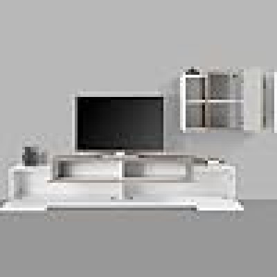 STRUTTURA E UTILIZZO - Mobile per salotto composto da una base porta TV di colore bianco con tre ante con apertura a ribalta e un pensile a muro: il mobile pensile è dotato di tre antine battenti con tre ripiani - Entrambi i moduli presentano un'anta con dettaglio di colore acero - A seconda delle vostre necessità potrete posizionare il modulo pensile all'altezza e nella posizione che preferite - Oltre alla TV potrete personalizzare la parete con i vostri soprammobili preferiti che rimarranno in esposizione - Lo spazio all'interno delle ante è perfetto per riporre in modo ordinato i vostri libri, oggetti o stoviglie in modo ordinato e discreto