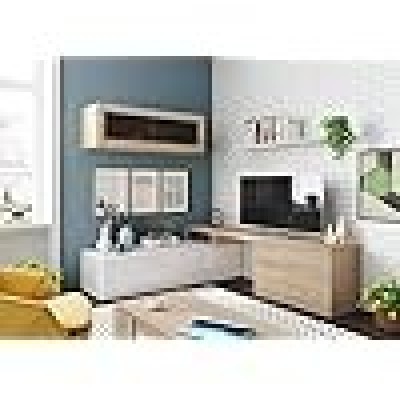 STRUTTURA E UTILIZZO - Mobile TV per salotto con possibilità di montaggio angolare, composto da una base porta televisione con due ante, di cui una a ribalta, un pensile a muro con anta singola a vasistas a vetro, una mensola abbinata - La scelta dei mobili che compongono questo set da salotto rendono il design di questo articolo d'arredamento moderno, funzionale e salvaspazio - Lo spazio all'interno delle ante è perfetto per riporre in modo ordinato i vostri libri, documenti, oggetti decorativi o stoviglie - Set soggiorno perfetto per arredare un salotto, sala da pranzo oppure una stanza open space
