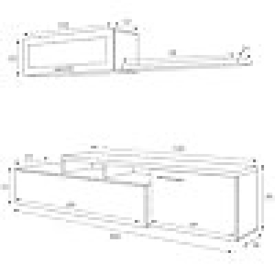 Dimensions en CM - Porte de télévision: Longueur: 200 Largeur: 41 Hauteur: 44 - Unité murale: 105x32h32 - étagère: 95x21h3