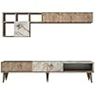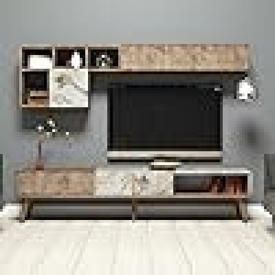 Mur équipé - Composition du salon, armoire de salon polyvalente, garde-robe TV, 180x35h40 cm, noix et blanc en marbre