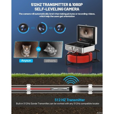 Maison > Voitures et motos > Anysun Vidéispection pour les tuyaux, l'endoscope avec auto-niveau et émetteur 512 Hz, appareil phot