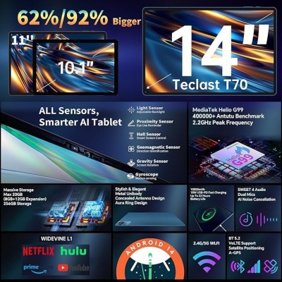 Maison > Comprimés Teclast T70 comprimés 14 pouces MTK G99 octa-core 2,2 GHz, 20 Go de RAM + 256 Go ROM (TF 8