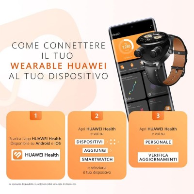 • Compatibile con iOS e Android】Questo dispositivo è compatibile con HarmonyOS 2 o versioni successive, Android 6.0 o versioni successive e iOS 9.0 o versioni successive. Scarica l'app HUAWEI Health per monitorare la tua salute e attività fisica