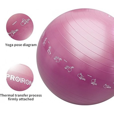 Proirt Palla Fitness avec motif de poses, fitball 55 cm 65 cm 75 cm avec pompe, balle pour Pilates,