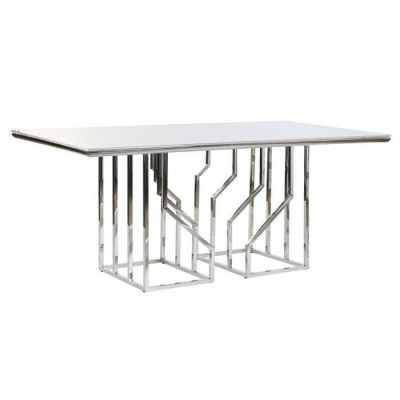 Maison > Table de salle à manger - Argenté - Verre - Acier - 180 x 90 x 75 cm - Élégante et moderne