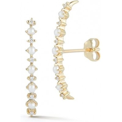 Mateo New York Les boucles d'oreilles rampicantes avec les perles et le diamant